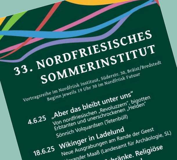 Am 4. Juni beginnt das 33. Nordfriesische Sommerinstitut. In gewohnter Vielfalt haben wir Wissenschaftlerinnen und Wissenschaftler eingeladen, uns aus Ihrer Forschung zu Nordfriesland zu berichten. Seien Sie herzlich willkommen zu allen fünf Vortragsabenden und unserem Doppeljubiläum von Verein und Institut, und bleiben Sie gerne anschließend auch noch einen Moment, kommen Sie mit den Vortragenden und anderen Gästen ins Gespräch und genießen Sie einen kühlen Wein (oder ein anderes Getränk). Hier die einzelnen Termine, abgesehen vom 6.7. immer mittwochs um 19 Uhr 30: