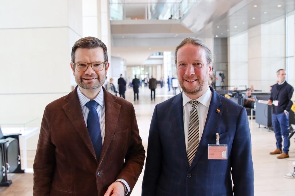 Etwas später am Nachmittag konnte ich schließlich noch kurz mit Bundesjustizminister Marco Buschmann MdB (FDP) sprechen und ein herzliches ´foolen tunk´ für die Arbeit seines Ministeriums ausrichten. Diese wichtige Begegnung hat mir die Bundestagsabgeordnete der FDP für den Wahlkreis Nordfriesland/Dithmarschen Nord, Gyde Jensen, organisiert - ganz herzlichen Dank an sie und ihr Team!