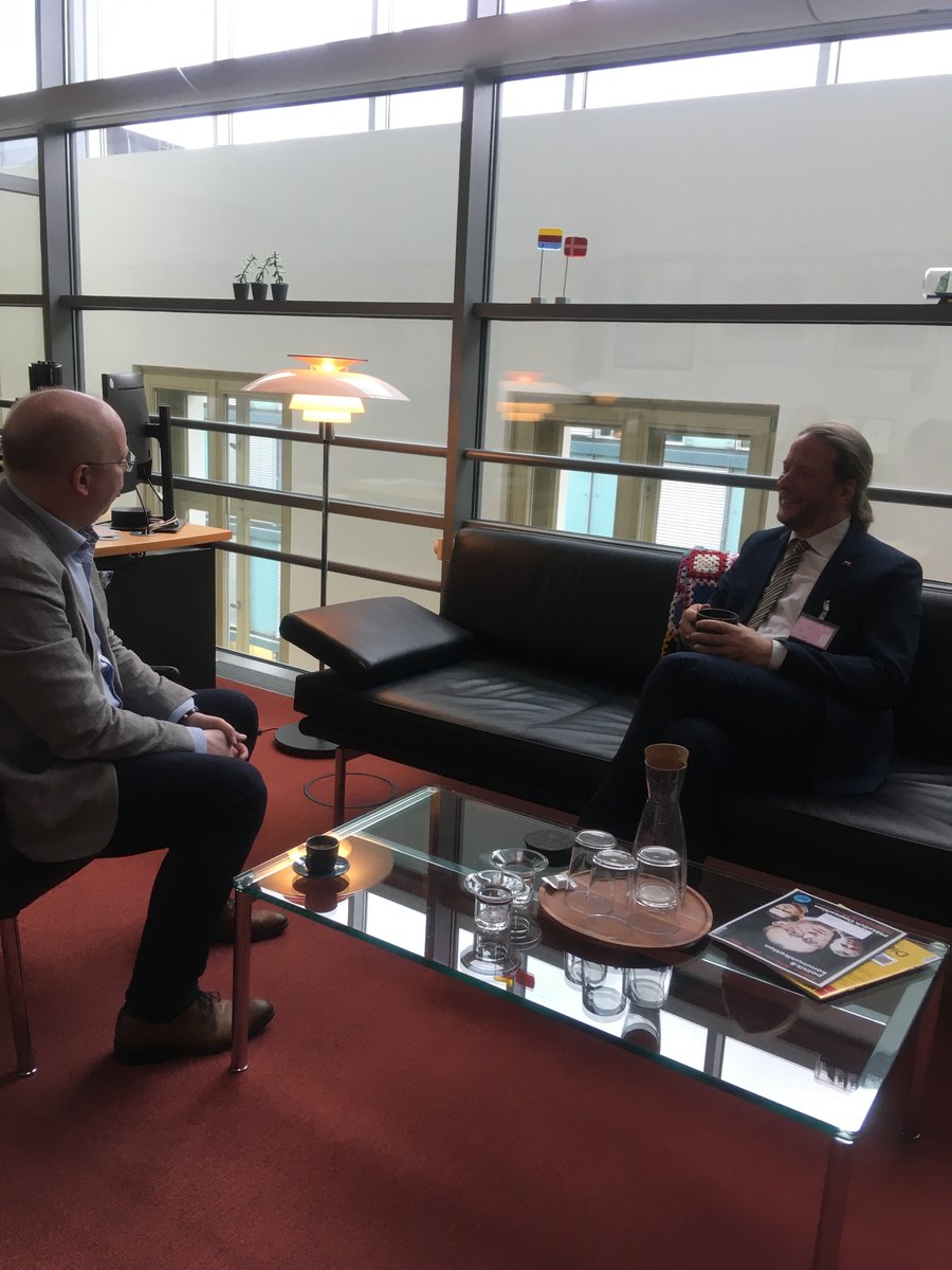 Dank Abfahrt zuhause um kurz vor fünf rechtzeitig, aber doch recht müde angekommen, bekam ich noch vor der Debatte von Stefan Seidler MdB (SSW) einen gemütlichen Kaffee unter der nordfriesischen Flagge serviert. Vielen Dank an das gesamte Team, vor allem an Büroleiterin Ulrike Gruhl, die mir die Teilnahme auf der Tribüne organisiert und mich den halben Tag treppauf und treppab durch die streng gesicherten Flure und Hallen des Parlamentes begleitet hat!