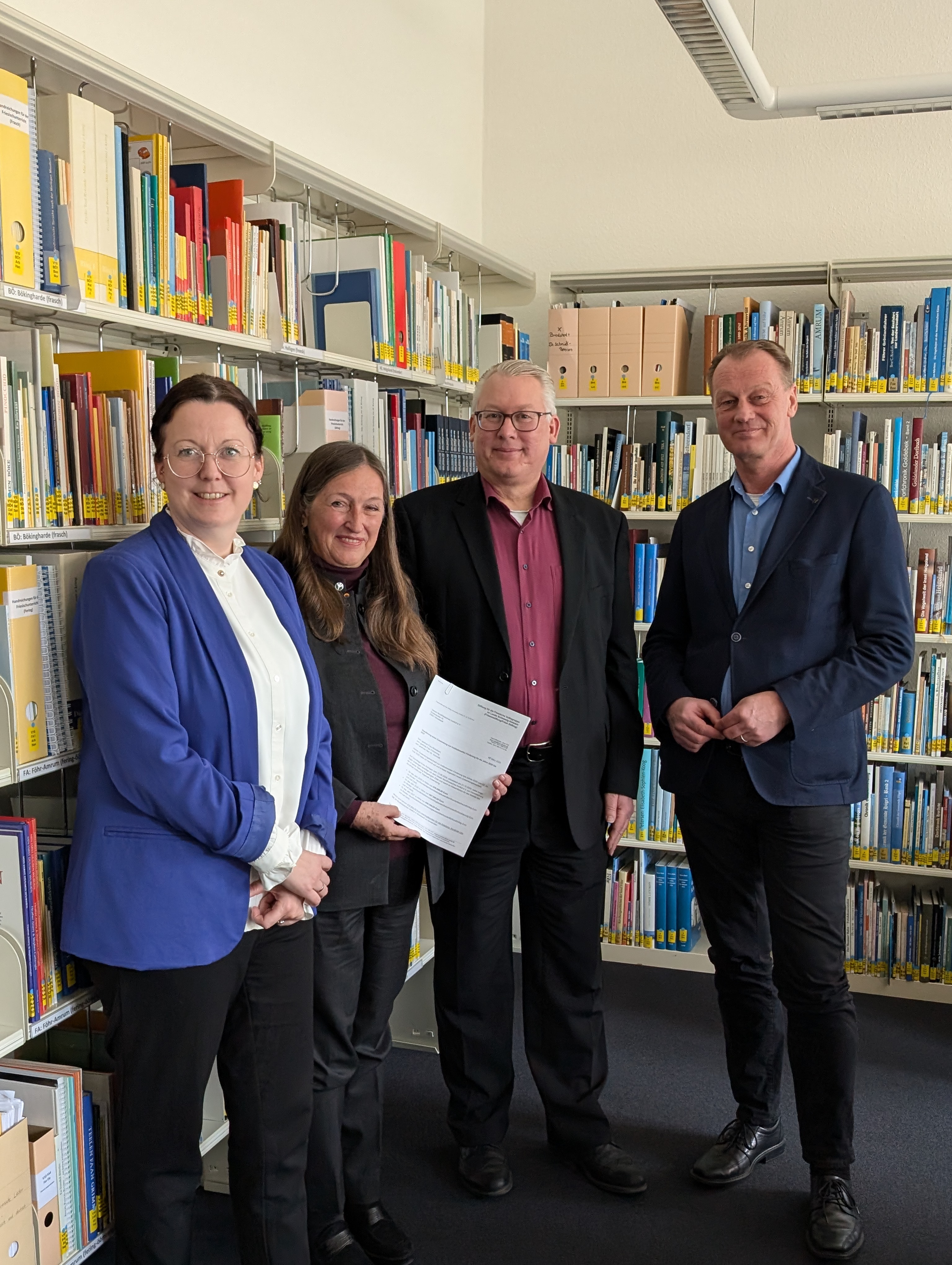 Seit vielen Jahrzehnten fördert das Land Schleswig-Holstein das Nordfriisk Instituut als wichtigste wissenschaftliche Einrichtung der friesischen Volksgruppe in Nordfriesland institutionell. Am Freitag, 21.3., konnte die Vorsitzende des Vereins Nordfriesisches Institut, Ellin Nickelsen, den neuen Förderbescheid für die Jahre 2025 bis 2027 von Hauke Grundmann, Vorstand der vom Land getragenen Friisk Stiftung, entgegennehmen. Die Fördersumme beträgt insgesamt rund 2,96 Mio. €, darin enthalten sind etwa 1,26 Mio. € für die Nordfriisk Liirskap - seit Ende 2023 ist diese neue Abteilung zur Förderung des Friesischunterrichtes an Schulen sowie zur friesischen Spracharbeit im Aufbau. Außer am Nordfriisk Instituut ist ein kleinerer Anteil dieser neuen Einrichtung auch an der Ferring Stiftung in Alkersum auf Föhr angesiedelt.