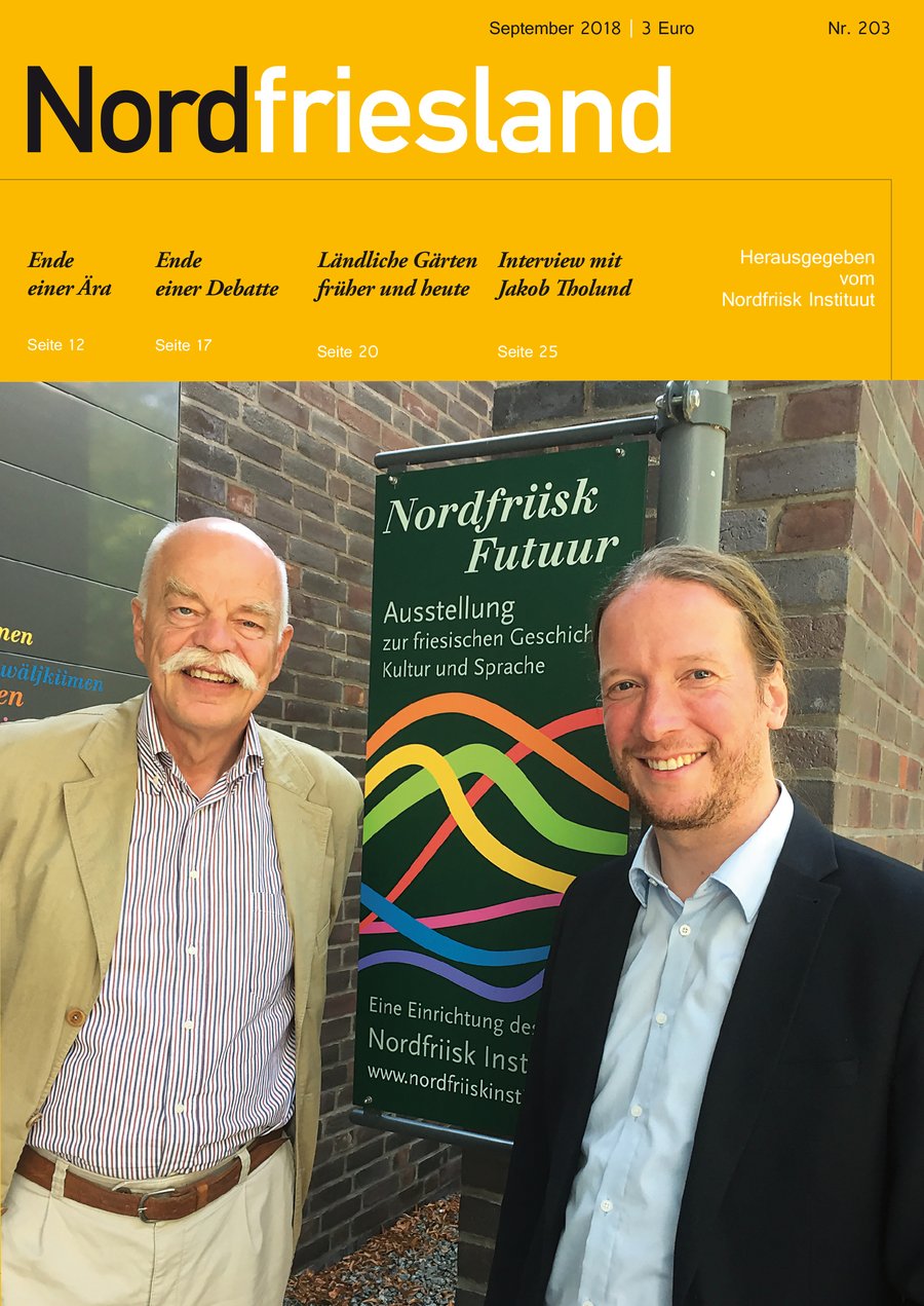 Die neue Ausgabe der Zeitschrift Nordfriesland aus dem Nordfriisk Instituut in Bredstedt ist soeben erschienen und bietet mehrere Themen: Institutsdirektor Prof. Dr. Thomas Steensen wurde am 31. August in den Ruhestand verabschiedet. Zu diesem Anlass schreibt sein Freund, Kollege und ehemaliger Kommilitone Frank Lubowitz einen persönlichen Rückblick.