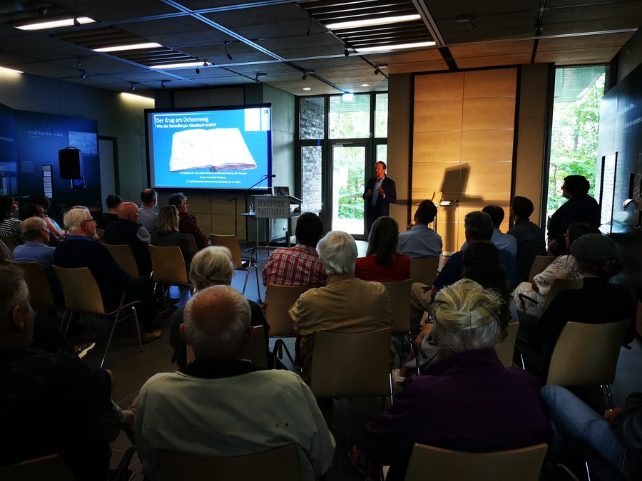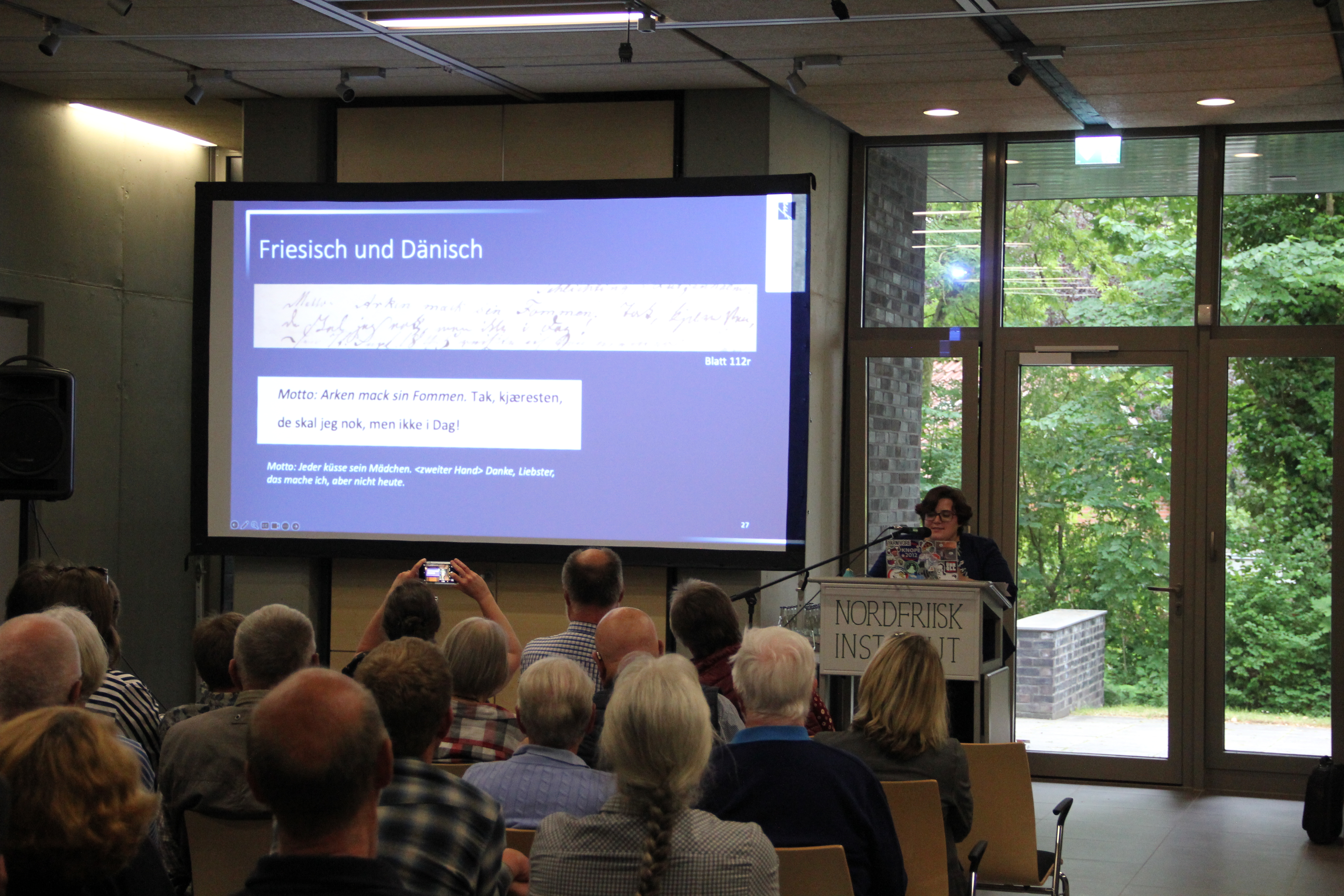 Es war der zweite Abend des 31. Nordfriesischen Sommerinstitutes, und er war bestens besucht. Offenbar trifft die Untersuchung von Einträgen im sog. Ranzelberger Gästebuch - aktualisierend geschildert als soziales Netzwerk vor allem von Tonderaner Seminaristen - einen Nerv. Geschrieben von mehr als fünfhundert verschiedenen Personen mit jeweils eigener Handschrift, zudem in unterschiedlichen Schriftarten (vor allem deutsche und dänische Kurrent, dazu lateinische Schreibschrift), teils verblichen, teils auch durchstrichen oder überschrieben - die buchstabengetreue Transkription (überprüft im Vier -bzw. teils sogar Sechsaugenprinzip) war nicht ohne Aufwand, konnte aber dank finanzieller Unterstützung durch die Friesenstiftung im Auftrag des Nordfriisk Instituut innerhalb eines guten Jahres abgeschlossen werden.