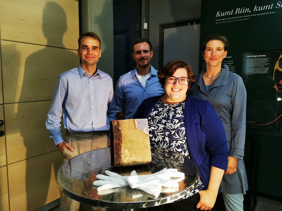 Ein besonderes Augenmerk der Forscherinnen und Forscher von der Universität Flensburg - die drei Studierenden Ilka Thomsen, Jan Momme Penning und Andre Hermann unter Leitung der Soziolinguistin Dr. Samantha Litty - lag auf der Nutzung der verschiedenen Sprachen. Die Auswertung läuft noch, aber eine erste Karte zeigte bereits regionale Eigenheiten und lässt ein Netzwerk entlang der heute deutschen und dänischen Westküste erkennen. Manche "Dialoge" wurden wechselnd in unterschiedlichen Sprachen geführt, mit der aufkommenden nationalen Spaltung politisierte sich der Jargon spätestens ab 1848 deutlich. Auch ein Repertoire bekannter Lieder lässt sich anhand von Zitaten erkennen, und akribisch identifizierte das Team einzelne Personen, was sich angesichts von Einträgen wie "Feddersen, Nordfriesland" oder sogenannter Biernamen nicht als besonders einfach erwies. Eines zeichnete sich zudem deutlich ab: Begehrteste Speise waren Pfannkuchen, Schweinebraten eher die Ausnahme, und getrunken wurden vor allem Wein und Punsch. Obwohl - im Nachgespräch beim Wein auf der Terrasse des Nordfriisk Futuur - kam dann doch noch eine Stelle ins Gedächtnis, die auch Bier erwähnt: ein Seminarist hatte zu nächtlicher Stunde die Uhr im Glas eines anderen versenkt. Vielleicht war Bier also zu alltäglich, um der Nennung wert zu sein.
