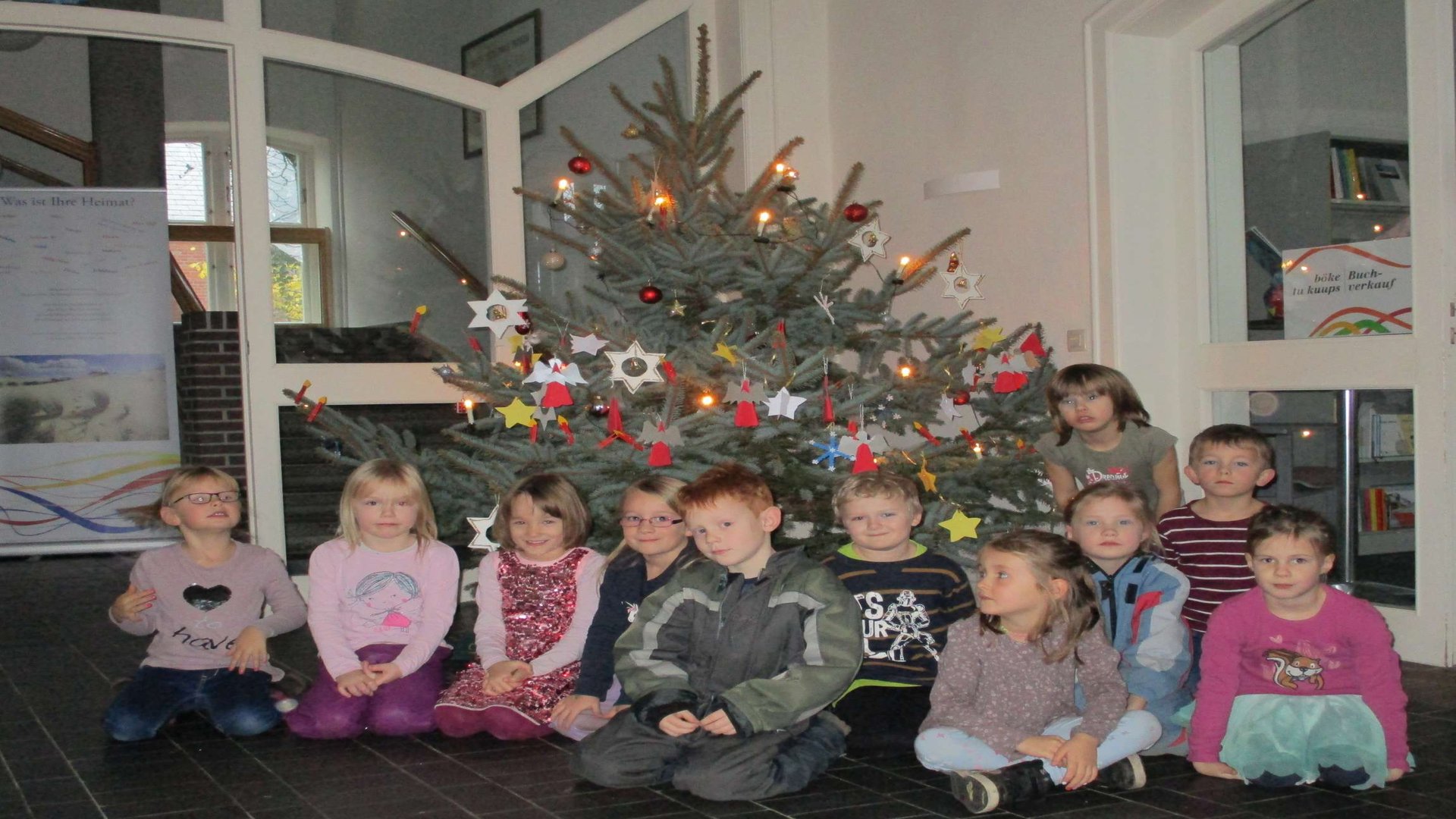 Eine Gruppe von Kindern des ADS-Kindergartens Bredstedt mit ihren Betreuerinnen besuchte am 12. Dezember 2018 das Nordfriisk Instituut, um friesische Weihnachtslieder zu singen und den Weihnachtsbaum im Foyer mit selbstgebasteltem Schmuck zu behängen. Die elf Mitarbeiter und Mitarbeiterinnen des Instituts waren gerührt und begeistert, wie gut die Kleinen die friesische Aussprache beherrschen. Der ADS-Kindergarten Bredstedt mit Standorten in der Kockstraße und der Westerstraße hat Friesisch und Plattdeutsch in seinem Profil. Direktor Dr. Christoph Schmidt bedankte sich im Namen des Instituts bei den Kindern und stellte fest: „Friesisch ist nicht nur Sache der älteren Generation, sondern auch ein Thema für Kinder und Jugendliche. Das zu sehen, freut uns immer wieder.“