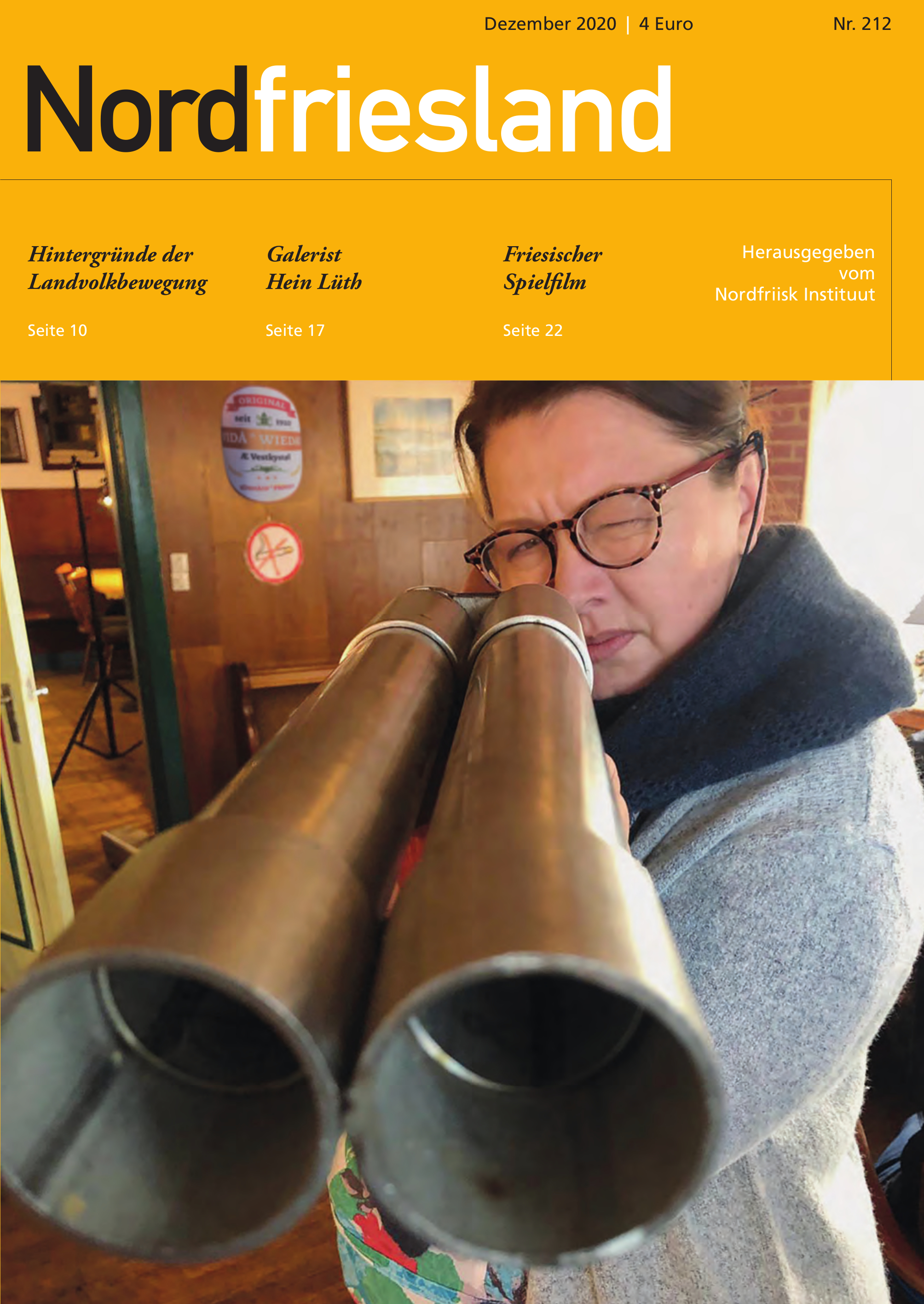 Antje Arfsten, Lektorin am Nordfriisk Instituut, nimmt uns aufs Korn, jedenfalls im Titelbild. Das entstand am Rande der Dreharbeiten des mehrsprachigen, grenzüberschreitenden Spielfilms „Der Krug an der Wiedau“. Über diese friesisch-plattdeutsch-dänische Kriminal-Satire berichtet Claas Riecken im Heft. Der Film soll im Sommer 2021 in die Kinos kommen. Nur so viel der Handlung sei verraten: Am Anfang hängt der Landrat von Nordfriesland tot über dem deutsch-dänischen Grenzzaun und es entbrennt die Frage, wer zuständig ist: die deutsche oder die dänische Polizei.