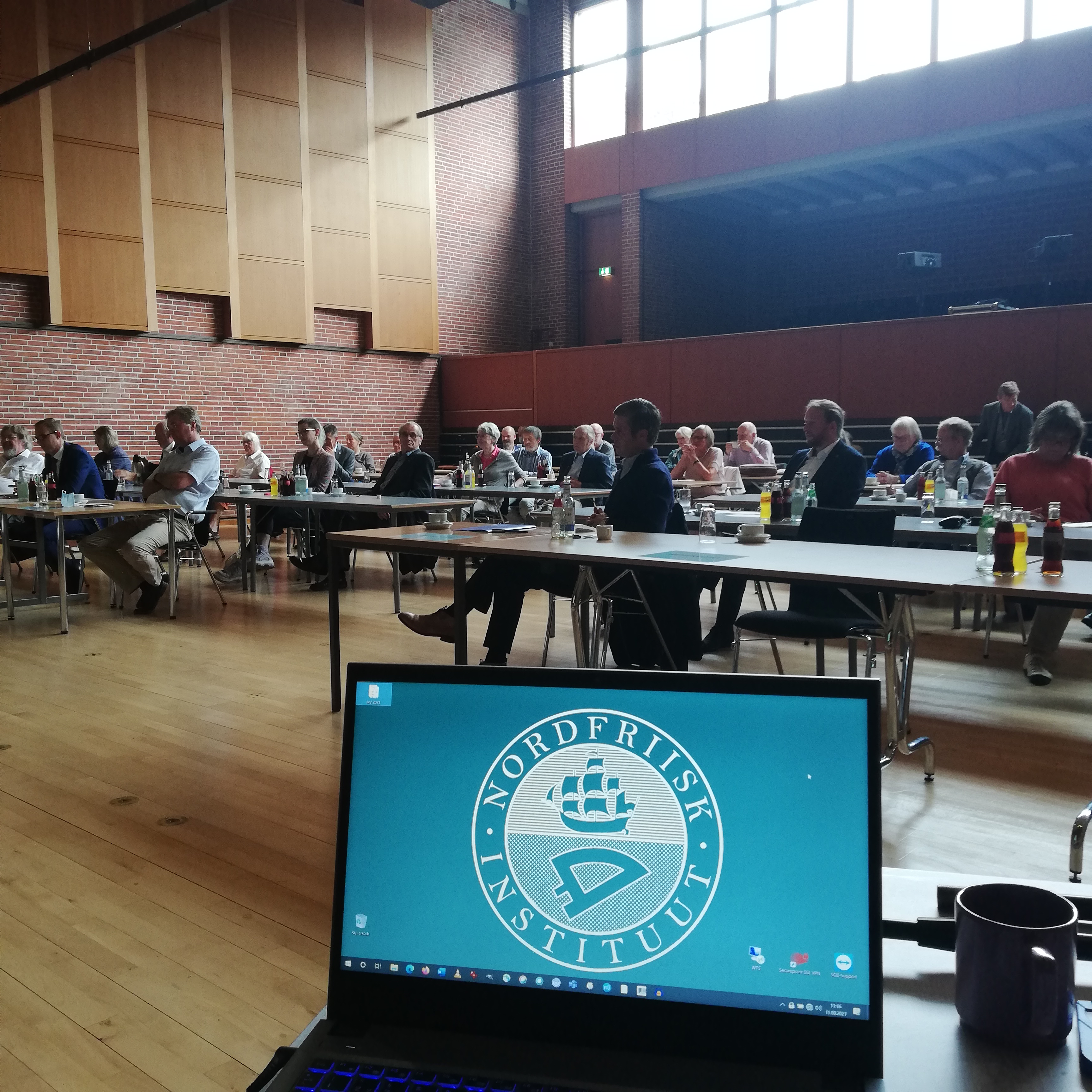 Institutsdirektor Christoph G. Schmidt stellte seinem Arbeitsbericht einige Gedanken zum Datum voran: „Die Attentate am 11. September 2001 sind daraus entstanden, dass Menschengruppen sich oder ihre Lebensweise für höherwertig, für moralisch überlegen halten – und zwar auf beiden Seiten. Solches Auftreten schürt Ablehnung und Hass. Von daher bin ich froh, dass wir in einer Gesellschaft leben, in der neuer Nationalismus auf deutlichen Widerspruch stößt, in einem Bundesland, das dem Schutz von Minderheiten Verfassungsrang gewährt. Angestammte Minderheiten stehen dafür, dass heterogene Vielfalt der historische Normalfall ist; das Streben nach Homogenität, nach Leitkultur jenseits der Gesetze geht immer mit Ausschluss und Unterdrückung einher. Besonders wichtig ist mir aber vor diesem Hintergrund, dass das Nordfriisk Instituut seinen Auftrag nicht in Verklärung oder Friesenverehrung, sondern im Streben nach Sachlichkeit, im ständigen Hinterfragen sieht.“ In seinem Bericht stellte er abgeschlossene und laufende Vorhaben der Institutsarbeit vor. „Das Grundlegende unserer Arbeit lässt sich freilich kaum in Bildern zeigen – es geschieht am Schreibtisch, im Lesen, Denken, Diskutieren und Schreiben“. Nach einer kurzen Pause nahm die Versammlung den Haushaltsbericht für 2020 entgegen und beriet über die Haushaltsplanung für die kommenden Jahre. Beides, Bericht und Plan, wurden einstimmig angenommen.