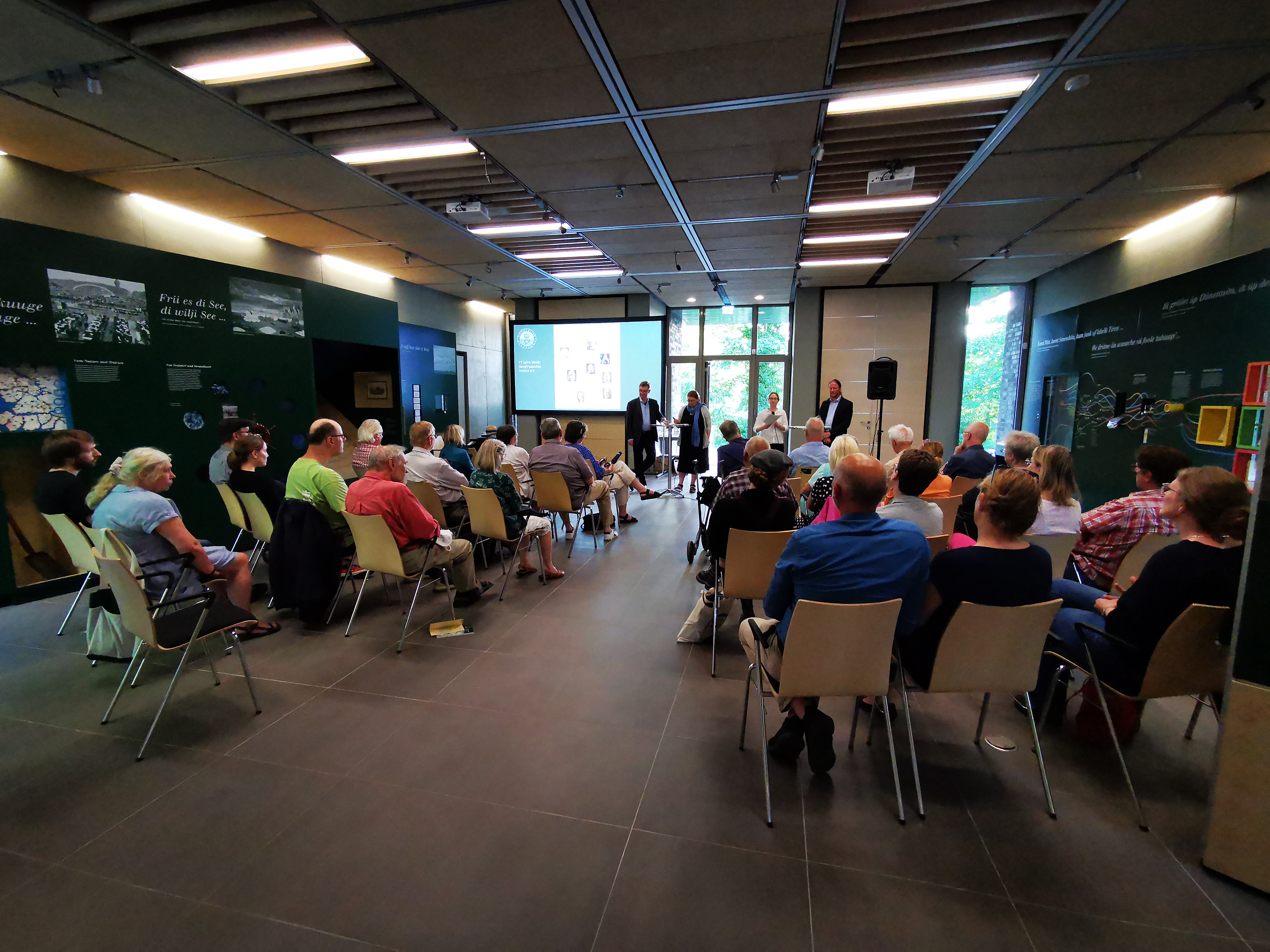 Schön, dass so viele Mitglieder und Nichtmitglieder unsere spezielle Geburtstagsfeier "75 Jahre Verein Nordfriesisches Institut" mitgefeiert haben - das gibt Vorfreude für die nächsten Abende, im zweiten Sommerinstitut nach Covid. Wir trafen Insider, die bei jedem aufgerufenen Namen wissend nickten und hinterher noch einiges zu erzählen wussten, als auch solche, die so gar nicht mit dem Thema vertraut waren, aber uns berichteten, nun doch ein wenig mehr zu verstehen, was die so typischen innernordfriesische Heterogenität eigentlich bedeutet und wo sie herkommt. Es hat funktioniert und es hat sich gelohnt!