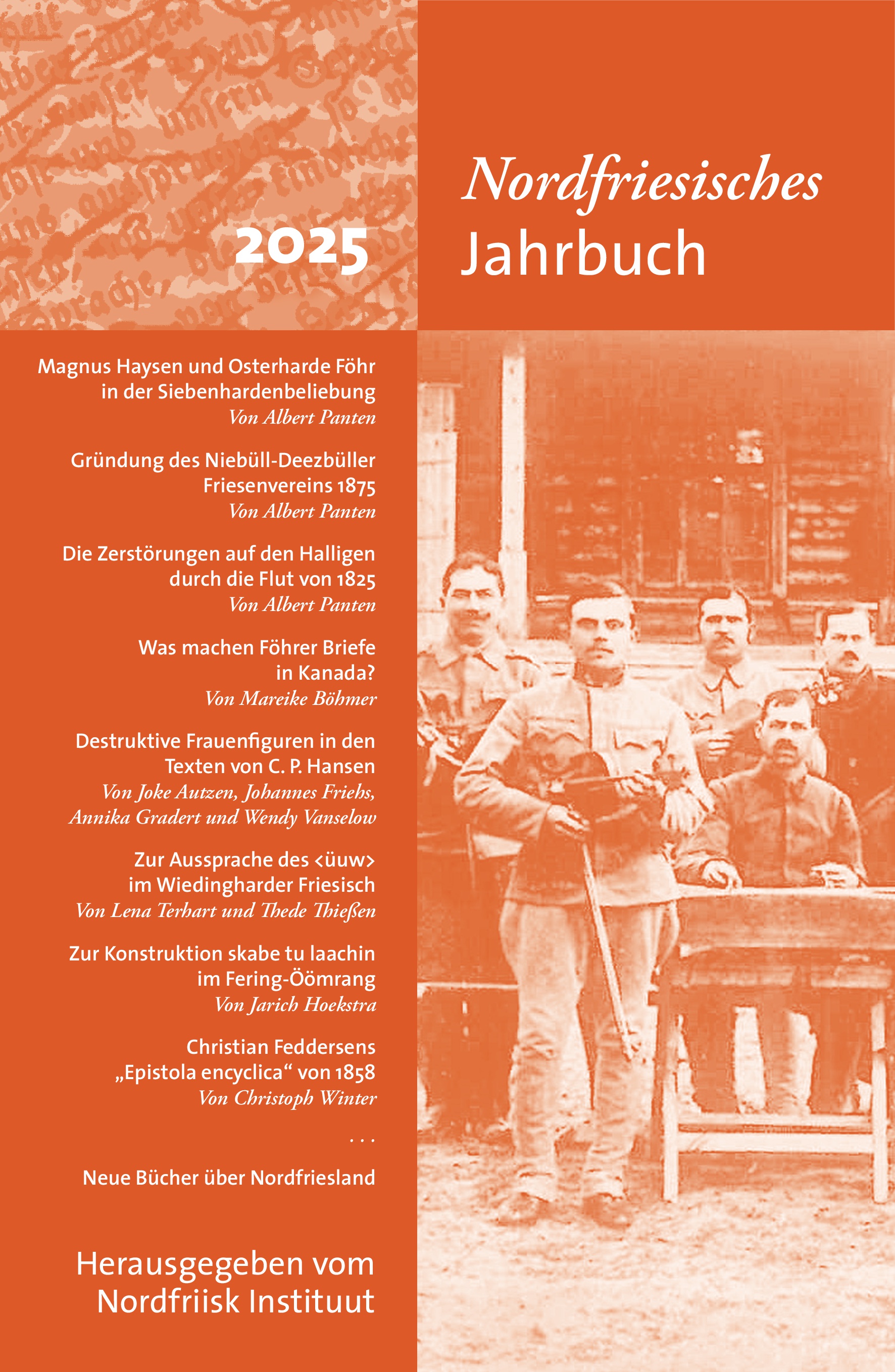 Das „Nordfriesische Jahrbuch“ wird herausgegeben vom Nordfriisk Instituut und dem Nordfriesischen Verein, es stellt aktuelle Forschungen zur nordfriesischen Geschichte und Kultur vor. Das neue Band für 2025 ist ab sofort bei uns im Nordfriisk Instituut und im Buchhandel erhältlich und bietet vielfältige Beiträge:. Ein handschriftlicher Bericht, mitgeteilt von Albert Panten, gibt Einblicke in die Zeit der Sturmflut von 1825, bei der insbesondere die Halligen große Zerstörungen zu verzeichnen hatten. Mareike Böhmer folgt dem Weg von Föhrer Briefen nach Russland und Kanada und erörtert anhand dieser das Kriegspostwesen im Ersten Weltkrieg Albert Panten liefert außerdem neue Erkenntnisse in Bezug auf das Treffen zur Aufzeichnung einer der ältesten nordfriesischen Rechtstexte, der 1426 aufgeschriebenen Siebenhardenbeliebung, sowie zur Gründung des Niebüll-Deezbüller Friesenvereins 1875.