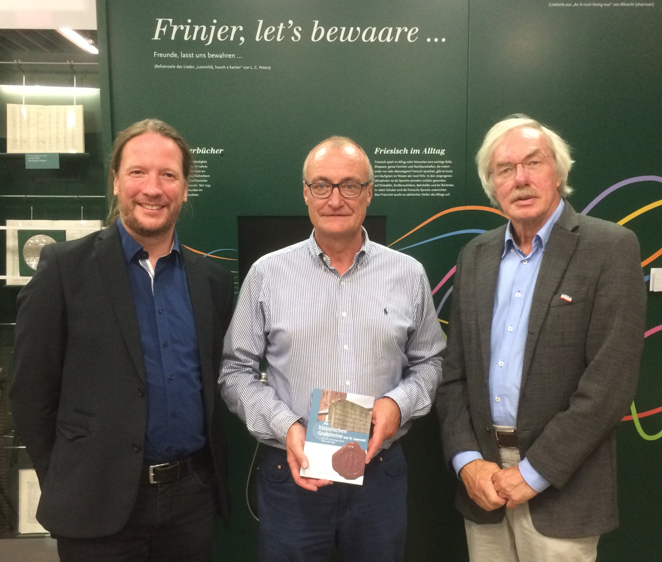 Der Vorsitzende der IG Baupflege Nordfriesland und Dithmarschen e.V., Hans-Georg Hostrup, und der Direktor des Nordfriisk Instituut, Dr. Christoph G. Schmidt, dankten dem Referenten herzlich. Das Buch „Die historischen Grabsteine von St. Laurentii“ kann außer auf Föhr auch im Nordfriisk Instituut erworben werden, es kostet 12 €.