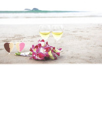 Innseite: Sektgläser am Strand + 1 Leerseite